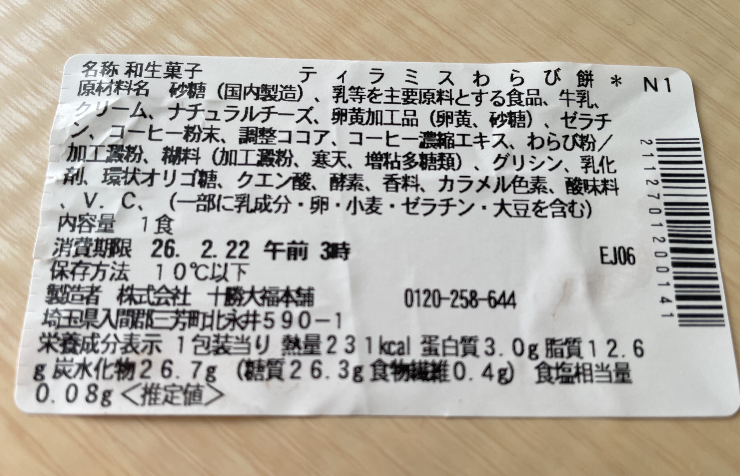 セブンイレブン新作「ティラミスわらび餅」基本スペック一覧