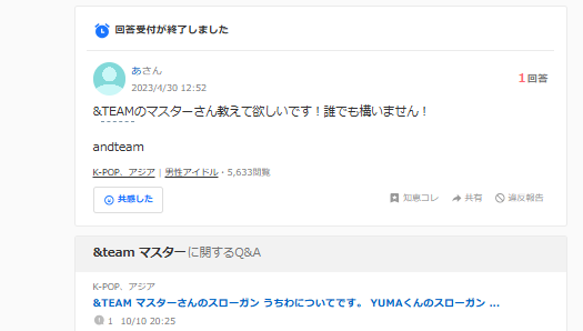 事実、インターネット上の「Yahoo!知恵袋」などでは、「&TEAMのマスターさんを教えてほしい」といった、具体的なメンバーのマスターを探す質問が多く見られています。