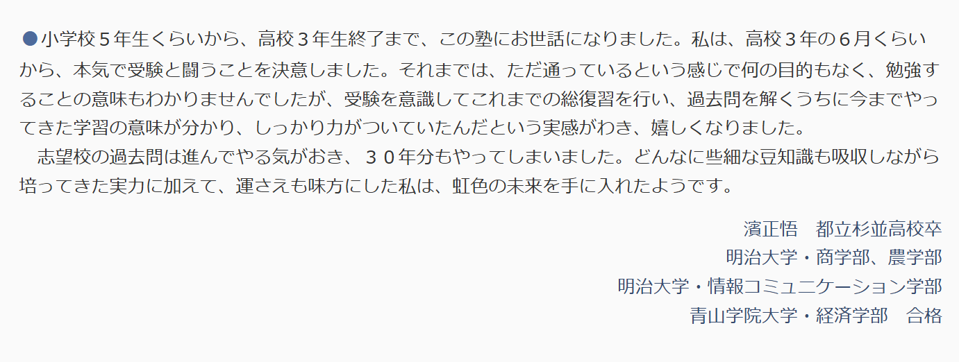 小学校5年生くらいから、高校3年生終了まで、早稲田学習塾に通っていたそうです。