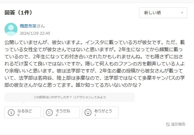 その方が「多摩キャンパスに通う同級生ではないか」という推測まで飛び交っていました。