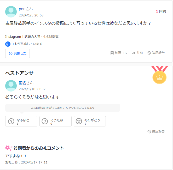 2024年1月に話題となった「知恵袋」情報とインスタ投稿